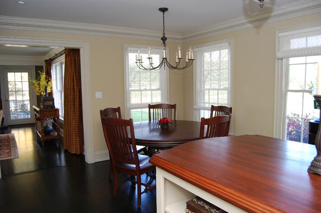 Design not withstanding, the bespoke mahogany island counter top increased the serving versatility with unsurpassed elegance. Rich mahogany wood accents combined with soft, warm whites and bronze metals give this kitchen renovation an inviting and capacious milieu!